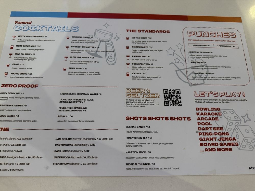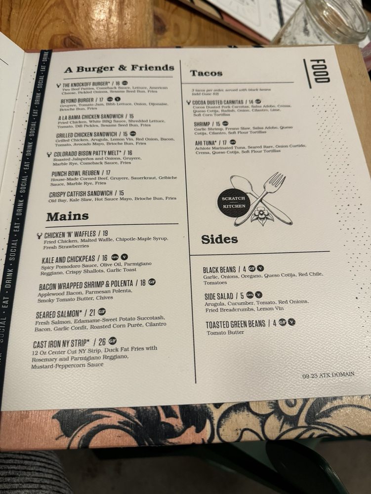 Punch Bowl Social, located in Austin, Texas, offers a trendy and casual dining experience with a wide range of menu options. With a focus on breakfast and brunch, they provide vegan and vegetarian options, making it accessible to all dietary preferences. The menu includes unique dishes like the Chicken & Waffles platter and Taco platter, perfect for sharing with family and friends. The sides and salads showcase fresh ingredients and bold flavors, such as the Kale Caesar and Roasted Beet Salad. The restaurant also offers various amenities like free Wi-Fi, waiter service, and happy hour specials. Overall, Punch Bowl Social is a vibrant and inclusive gastropub that caters to a diverse audience with its delicious food and inviting atmosphere.